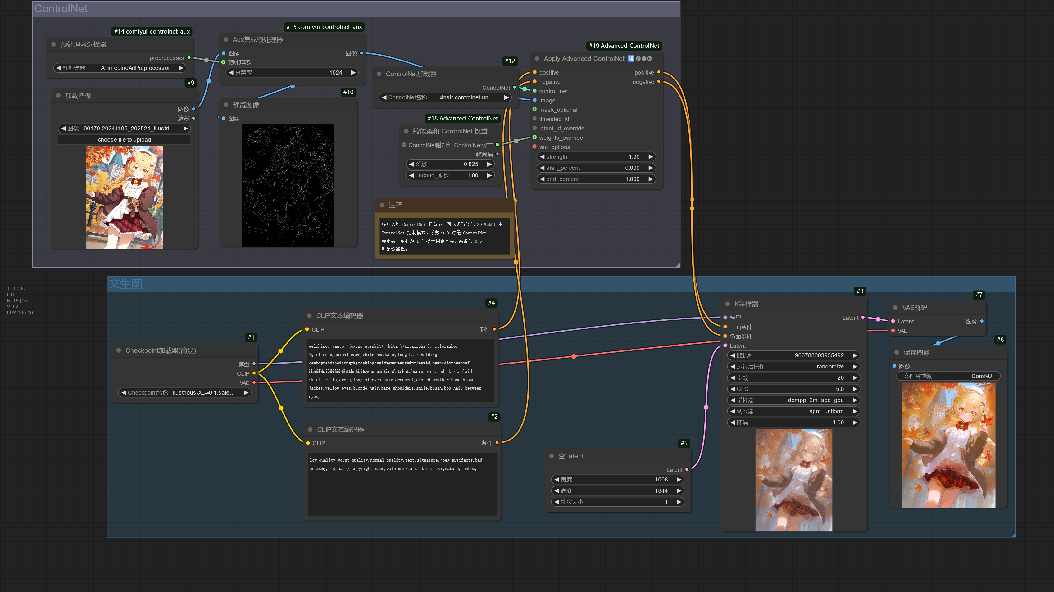 这个工作流简单实现 ControlNet 不同的功能,并且使用 comfyui_controlnet_aux 扩展提供的预处理器节点处理图片,不再需要手动处理图片再导入。通过修改预处理器选择器中的预处理器来实现切换不同的控制类型。