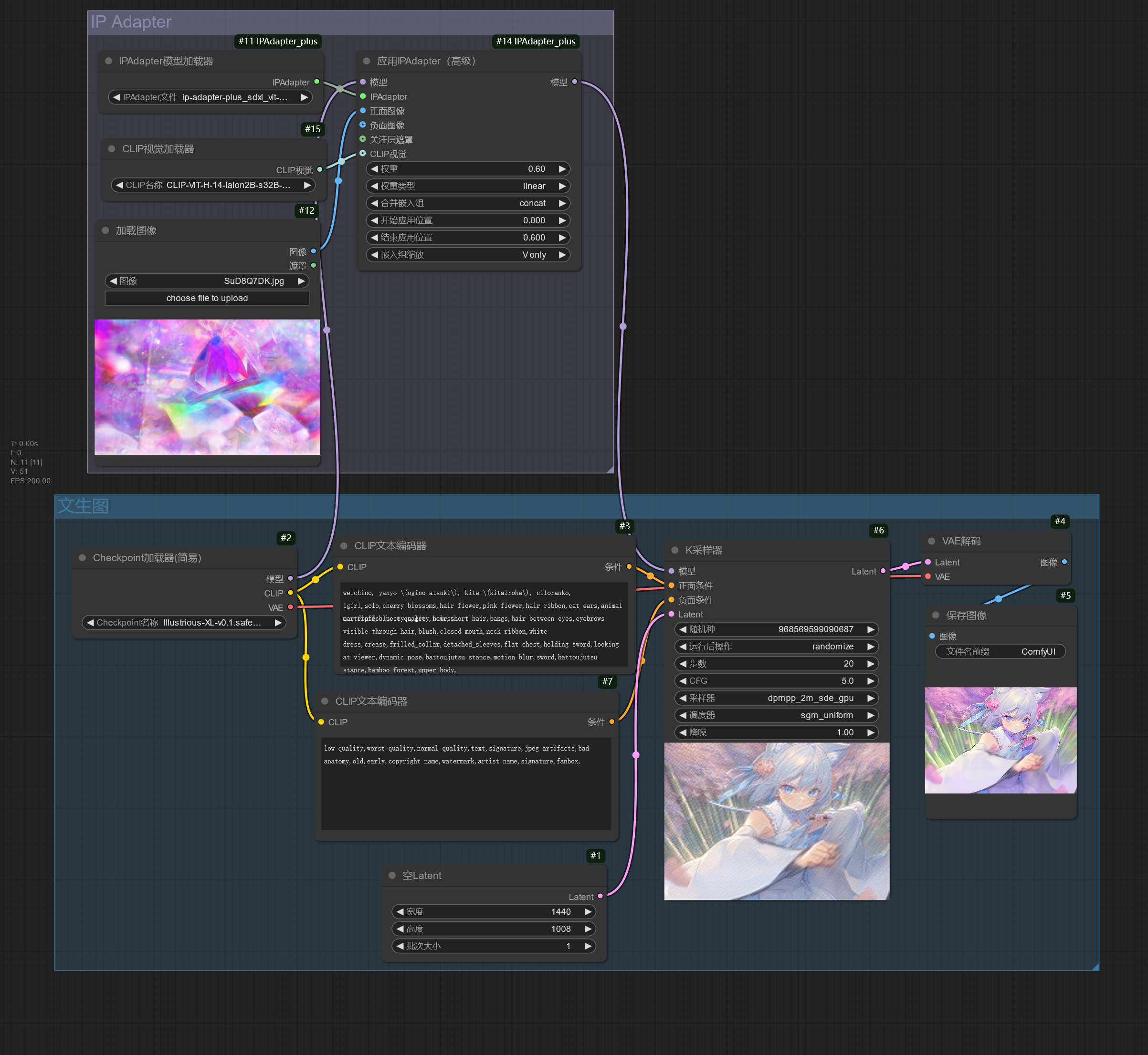 ComfyUI_IPAdapter_plus 扩展提供 IP Adapter 用于迁移画风,下面的工作流简单演示如何进行画风迁移。
