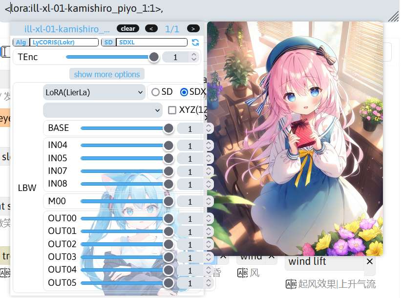 lbw 后面的数字代表了 LoRA 模型在不同 UNet 层控制的权重。调节这些权重可使 LoRA 模型的表现效果更好。