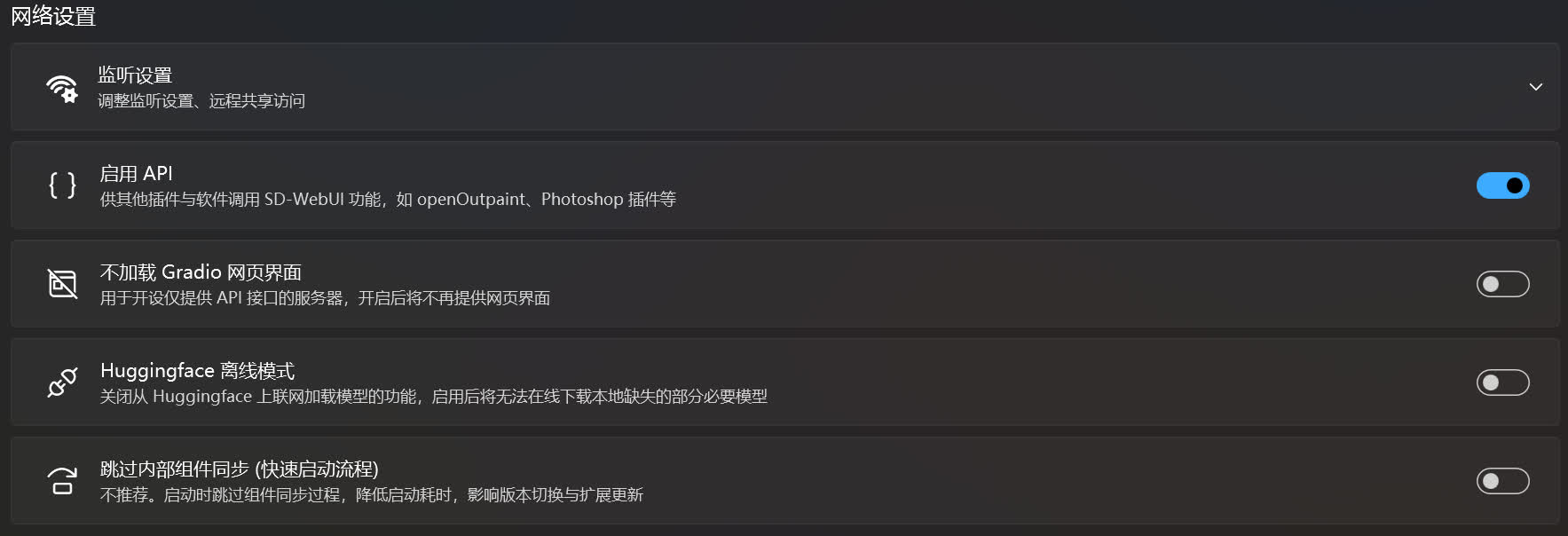 --enable-insecure-extension-access - (启用时) SD WebUI Forge: